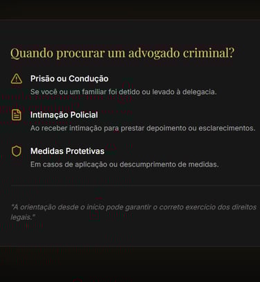 Atuação especializada em Direito Criminal, oferecendo suporte jurídico em momentos decisivos. Cada caso é analisado individualmente, conforme as circunstâncias específicas.
